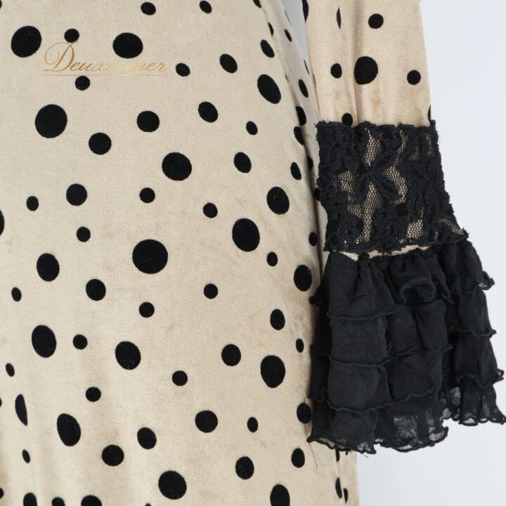 フラメンコ 衣装 ワンピース ドレス 水玉 ドット フリル レース 黒 ベロア ダンス 舞台 発表会 長袖 チャレコ Alcala ゴールド系 フラメンコドレス おしゃれ パーティー衣装 レディース 薄手 軽量 伸縮性 ショップ用 コスチューム 魅力的 エレガント 高級感 ファッション