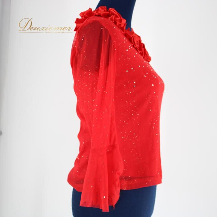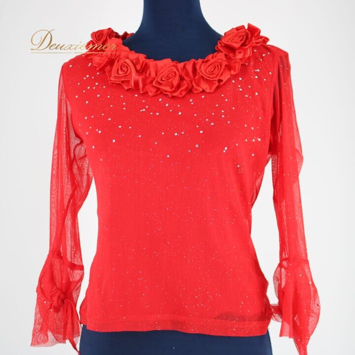 #社交ダンス #ダンス衣装 #トップス #ダンスパフォーマンス #オールレッド #華やかデザイン #バラモチーフ #ラメ #ラインストーン #ダンサー #ダンスファッション #アウトフィット #パーティーコスチューム #女性用衣装 #パフォーマンス衣装 #伸縮性 #サイズ展開 #トルソー #ダンススタイル #ダンスイベント #ENUTSU