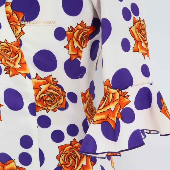 フラメンコ 衣装 ワンピース ドレス ペチコート 紫 オレンジ ドット 水玉 花柄 パープル系 ダンス 舞台 パーティ 発表会 カラフル ステージ衣装 フェス モダン 可愛い フリル付き エレガント 大人 コスチューム 踊り かわいい