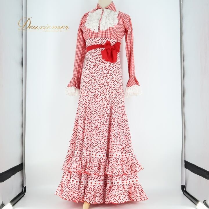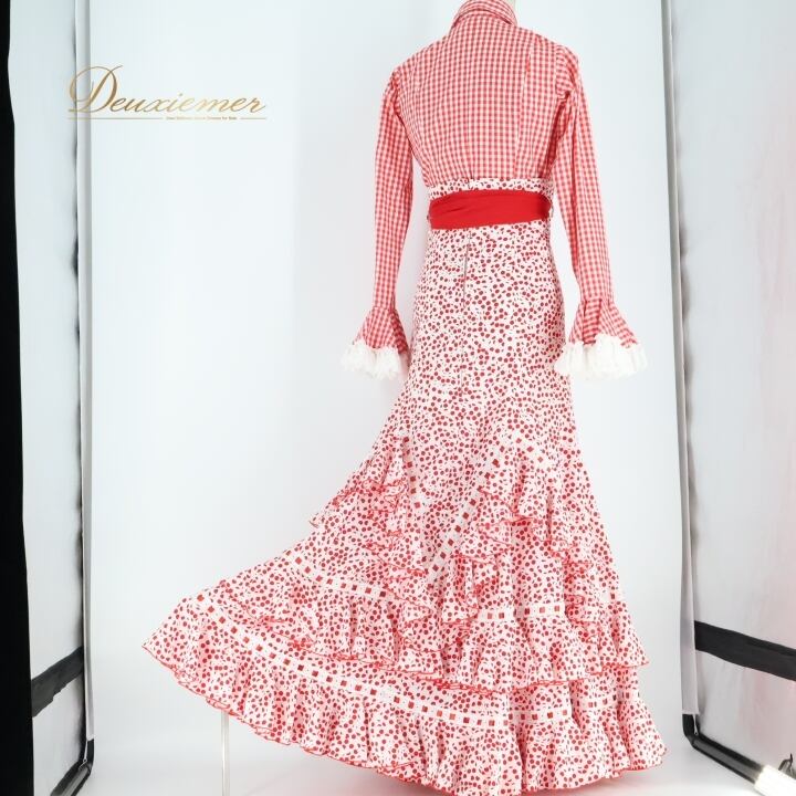#フラメンコ #衣装 #ツーピース #セットアップ #上下一体 #ダンス衣装 #コスチューム #赤白チェック #おしゃれ #ファッション #女性用 #トルソー #ストリートファッション #アレンジ #スカート #パフォーマンス #スタイル #エレガント #伸縮性 #ENUTSU