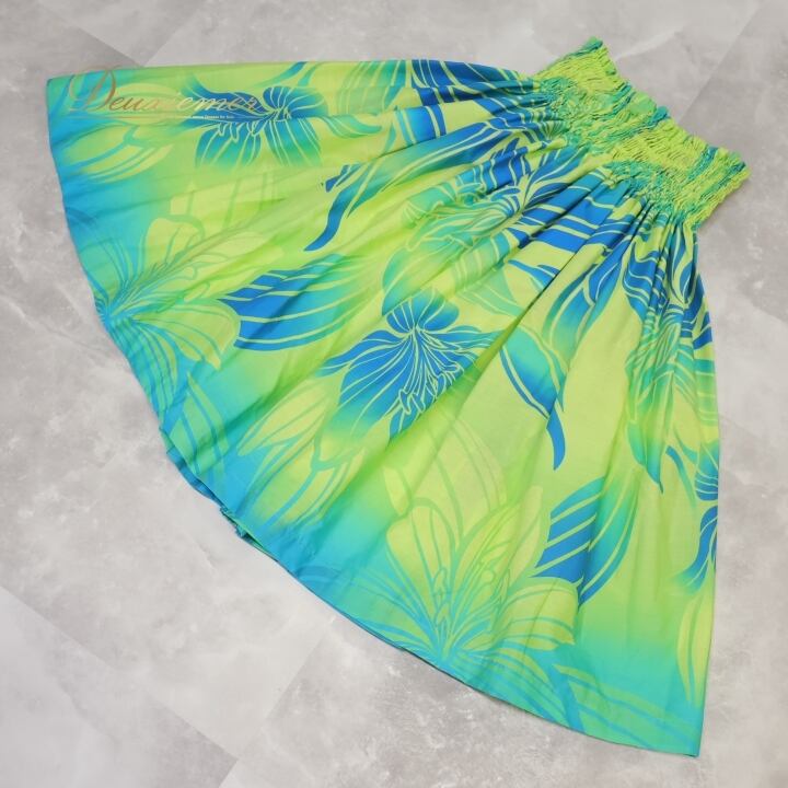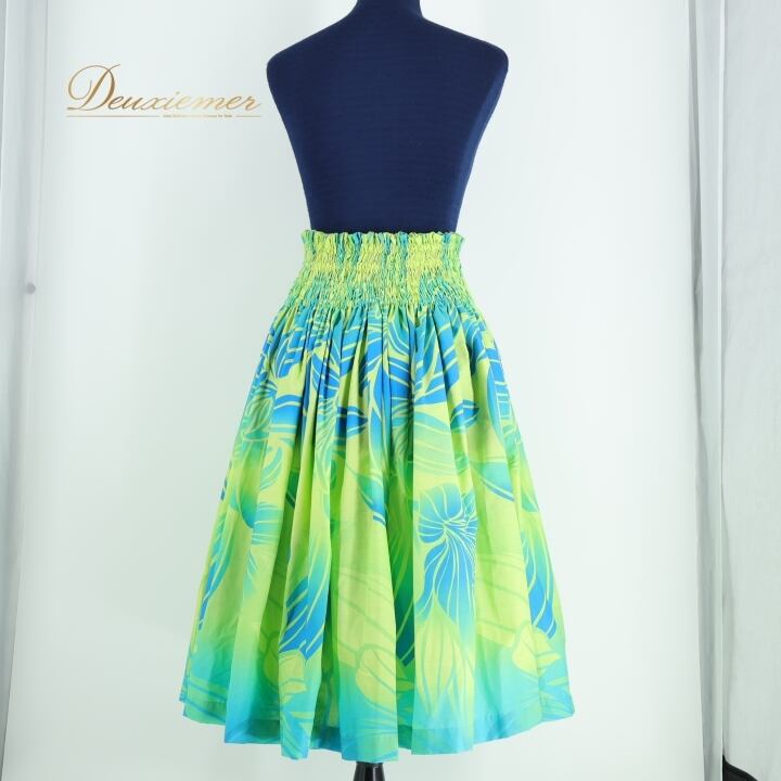 フラダンス 衣装 パウスカート グリーン系 フラ ダンス シングル アロハエミカ 花柄 緑 青 ハワイアン グラデーション 華やか Aloha Emika レッスン 練習 鮮やか アロハ ハワイアンプリント ブルー系