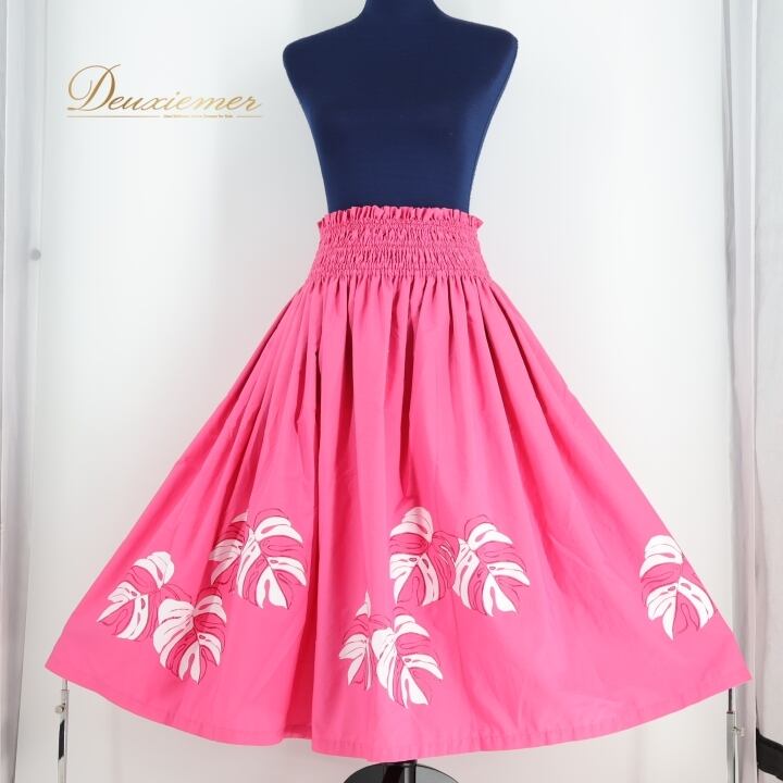 #フラダンス衣装 #パウスカート #フラダンス #パフォーマンス衣装 #ダンス衣装 #モンステラ #日本製 #ピンク #ホワイト #ウエストゴム #手作り #アロハ #フラレッスン #カラフル #ダンスファッション #リゾートスタイル #ビーチウェア #トルソー #かわいい #ENUTSU