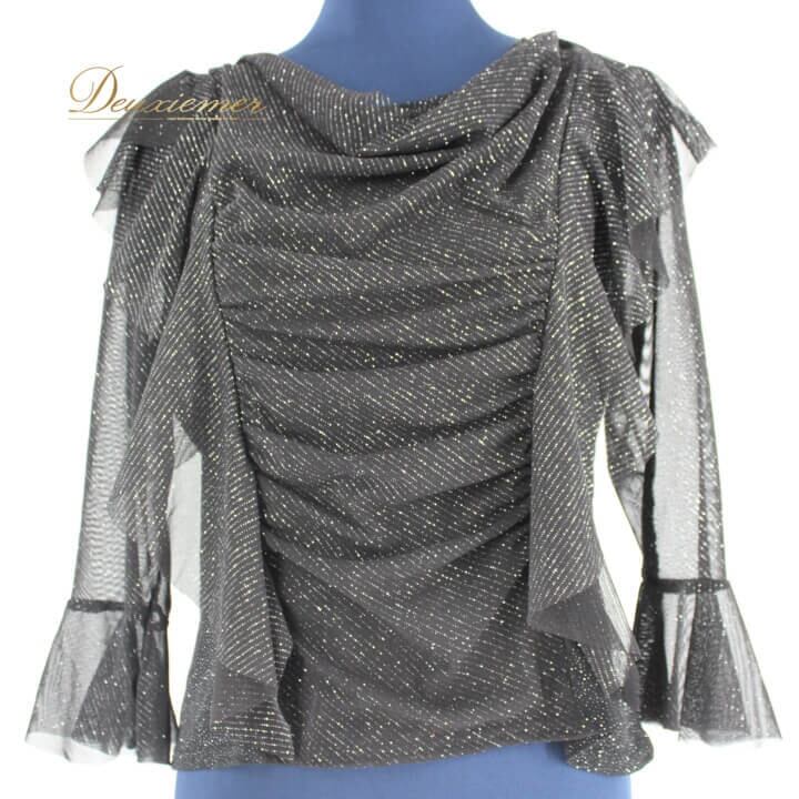 社交ダンス 衣装 スタンダード トップス レッスンウェア 練習着 ダンスパーティー レディース ブラック系 黒 シンプル Da Vistosa ドニャヴィストーサ 長袖 レース ドレープ キラキラ 社交ダンス トップス ダンスウェア フォーマル 体型カバー