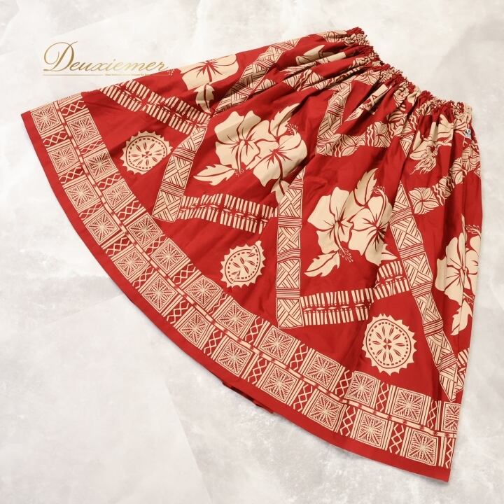 #フラダンス #パウスカート #ハナ #日本製 #衣装 #レッド #ベージュ #花柄 #ウエストゴム #ポケット付き #ダンス衣装 #フラダンス衣装 #おしゃれ #クール #かわいい #女性用 #トルソー #カジュアル #フラ #ENUTSU