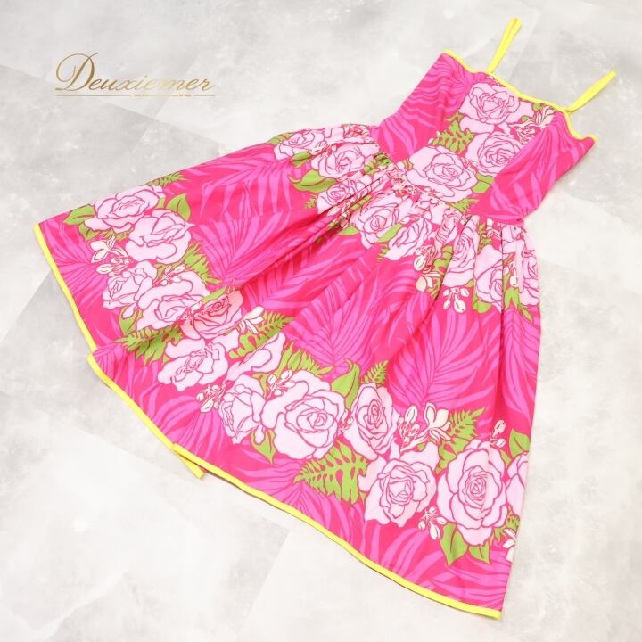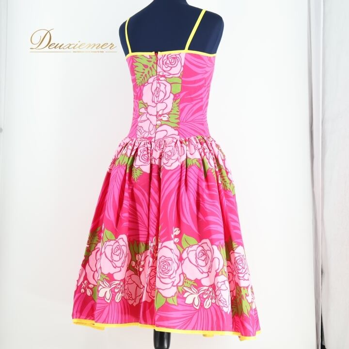 フラダンス 衣装 ワンピース ドレス ピンク系 マカマカ フラ ダンス 花柄 緑 白 キャミソール 華やか 明るい ロケラニ柄 ハワイアン アロハ ふんわり ハワイアンプリント MakaMaka ペチコート グリーン系 ホワイト系 イエロー系