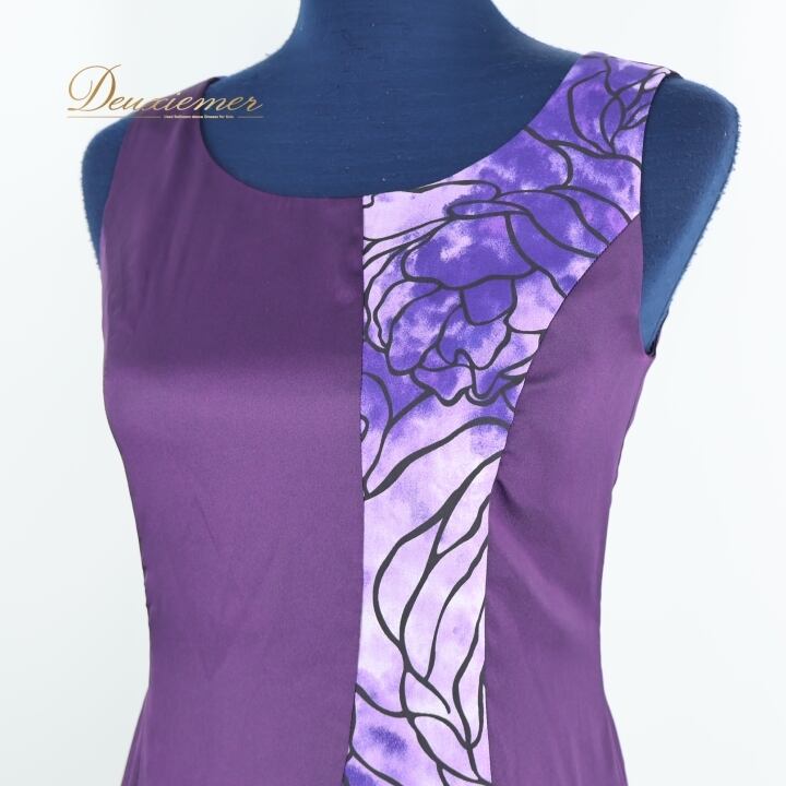 フラダンス 衣装 ワンピース ドレス パープル系 ブルーヘブンカンパニー フラ ダンス 紫 花柄 ノースリーブ 光沢 ハワイアン ロケラニ柄 アロハ 袖なし 鮮やか BLUE HEAVEN COMPANY 華やか 上品 ハワイアンプリント 高級感