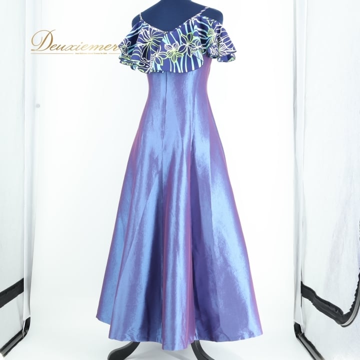 #フラダンス #ダンス衣装 #ワンピースドレス #日本製衣装 #マーメイドライン #ブルードレス #花柄 #フリル #キャミソール #鮮やか #光沢素材 #女性らしい #バレエ #舞台衣装 #ビーチスタイル #イベント衣装 #夏のファッション #特別な日に #パーティードレス #ENUTSU