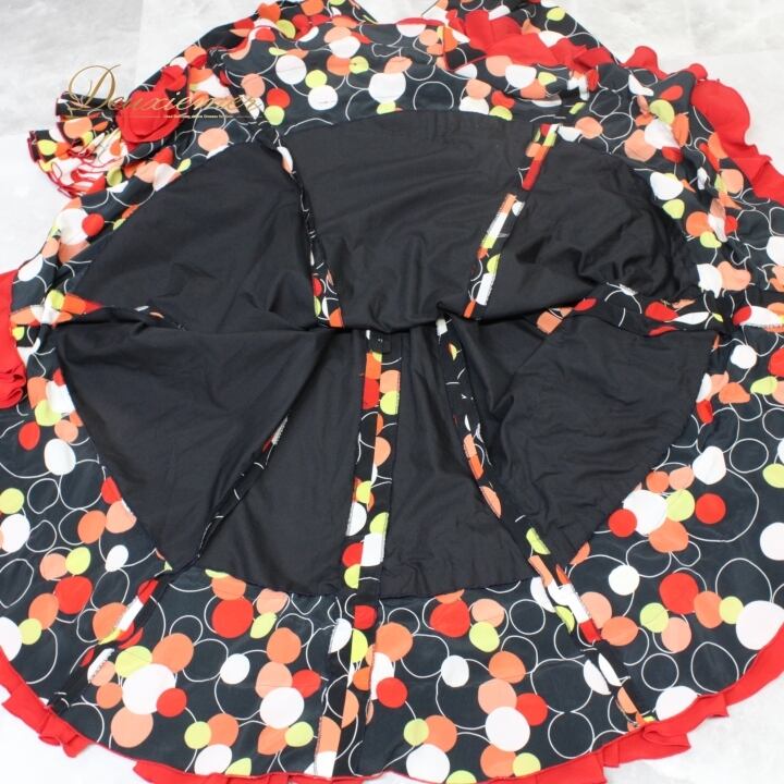 フラメンコ 衣装 ワンピース ドレス 黒 ボランテ 水玉 マルチ柄 模様 フリル 多彩 ドット 発表会 パーティ 舞台 ブラック系 カラフル おしゃれ ダンス衣装 フェス レディース フリル付き豪華 かわいい