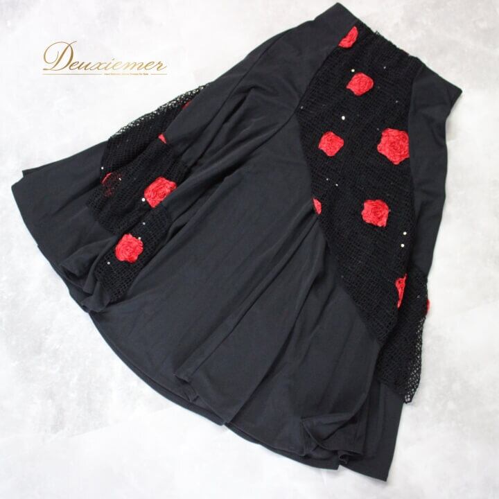 #社交ダンス #ダンス衣装 #スカート #花柄 #スパンコール #ブラック #レッド #ウエストゴム #伸縮性 #トルソー #ダンスファッション #ダンススタイル #女性用衣装 #パーティーコスチューム #エレガント #ダンスウェア #ダンスルーム #ダンス小物 #社交ダンス衣装 #ENUTSU