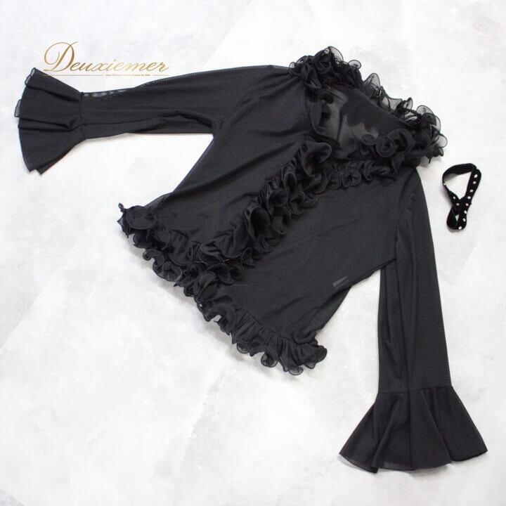 #社交ダンス #ダンス衣装 #ダンスウェア #オシャレ #アーバンブラック #ボリュームフリル #2WAY #ファッション #スタイル #パーティー #イベント衣装 #女性用 #ダンスファッション #コーディネート #ブラックドレス #ホック留め #伸縮性 #トルソー #華やか #ENUTSU