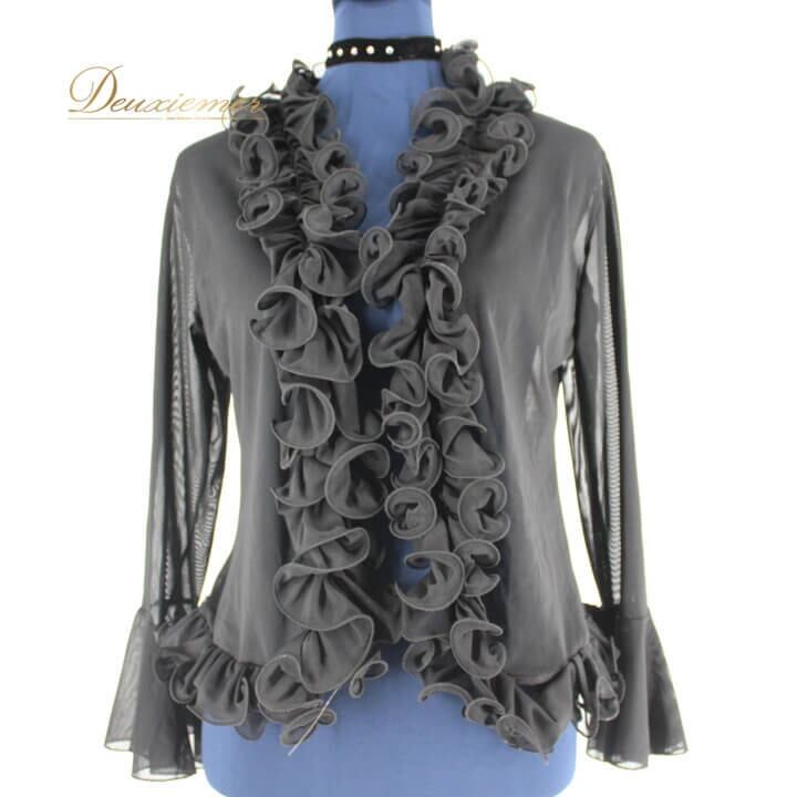 社交ダンス 衣装 スタンダード トップス レッスンウェア 練習着 レディース オールシーズン ブラック系 黒 ICHIOKU イチオク チョーカー ラインストーン 長袖 フリル おしゃれ ダンス用トップス フリルデザイン 2WAY コーディネート