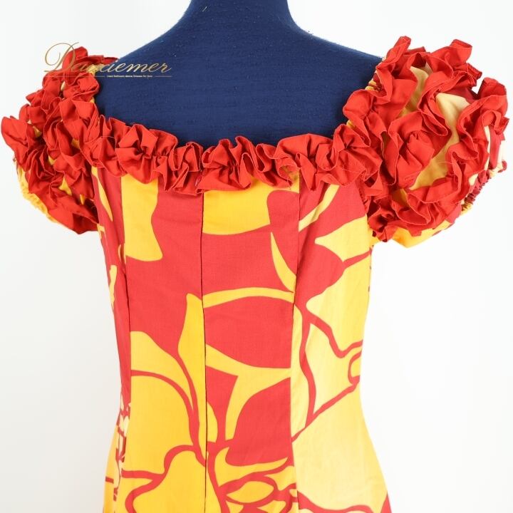 #フラダンス #フラダンス衣装 #ドレス #ワンピース #ハワイアン #トロピカル #ビビッドカラー #レッド #イエロー #オレンジ #花柄 #フリル #女性用 #体型カバー #エスニック #リゾートファッション #夏服 #ファッション #楽器 #ダンス衣装 #ENUTSU