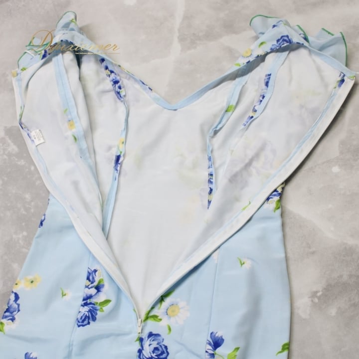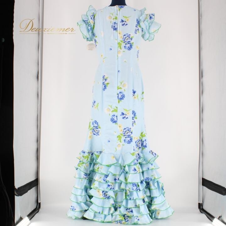フラメンコ 衣装 ワンピース ドレス DONAANA 水色 ボランテ フリル 花柄 スカイブルー ブルー系 ダンス 舞台 パーティ 発表会 黄緑 青 ドレススタイル 明るい色 おしゃれ 踊り フラワー柄 イベント用 花模様 ステージ衣装