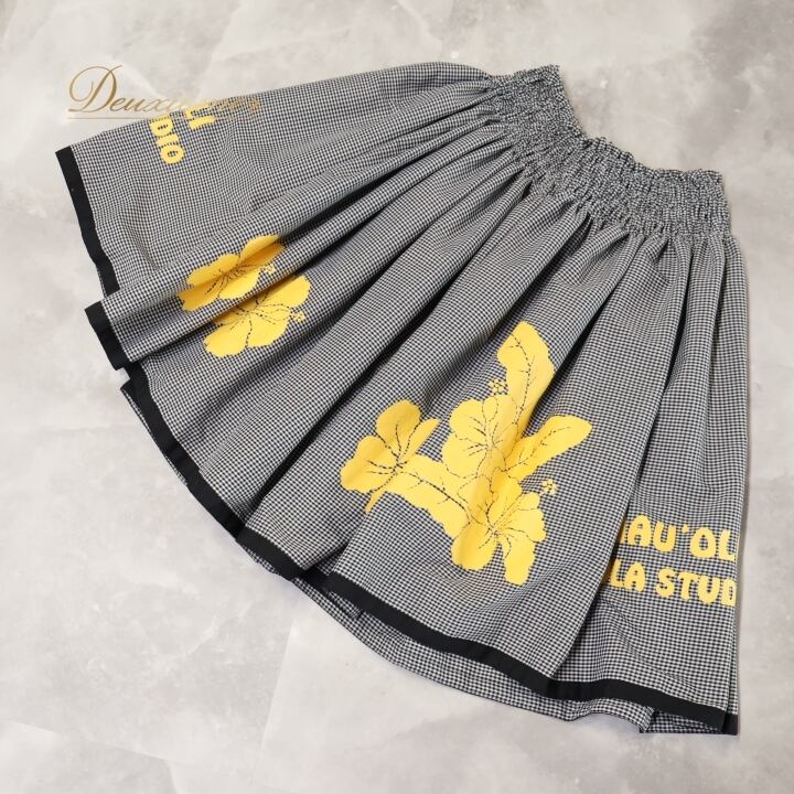 フラダンス 衣装 パウスカート ブラック系 フラ ダンス シングル レッスン チェック柄 花柄 黒 白 黄 ハワイアン 練習 ふんわり ハイビスカス柄 スカート 華やか アロハ ハワイアンプリント ホワイト系 イエロー系