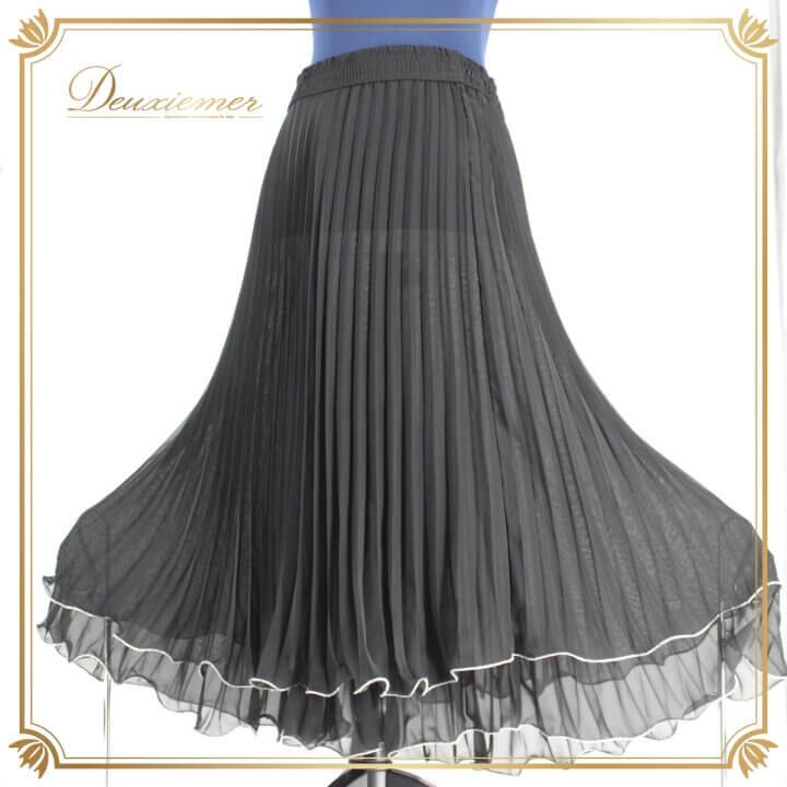 社交ダンス 衣装 スタンダード スカート レッスンウェア レディース オールシーズン ブラック系 黒 プリーツ 無地 シンプル 透け感 シースルー 洗練された 二重スカート かわいい 伸縮性 アーバンデザイン 軽やか お洒落 大人 女性用 フレア 楽に着れる