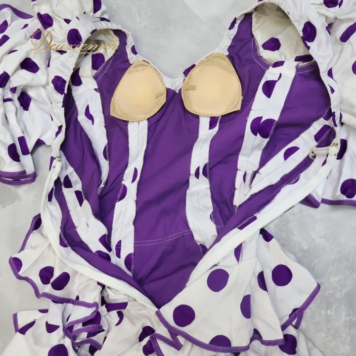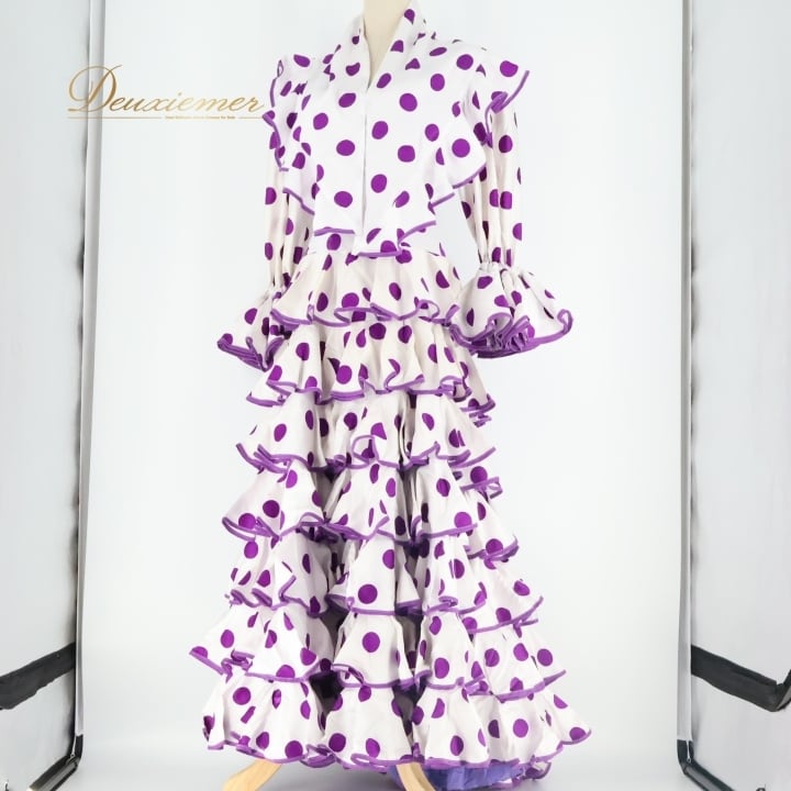 #フラメンコ #衣装 #ワンピース #ドレス #パーティードレス #カラフル #紫 #白 #ファッション #女性用 #衣装レンタル #ステージ衣装 #独特デザイン #背面ファスナー #おしゃれ #ダンス衣装 #スリム #サイズ感 #軽やか #ENUTSU