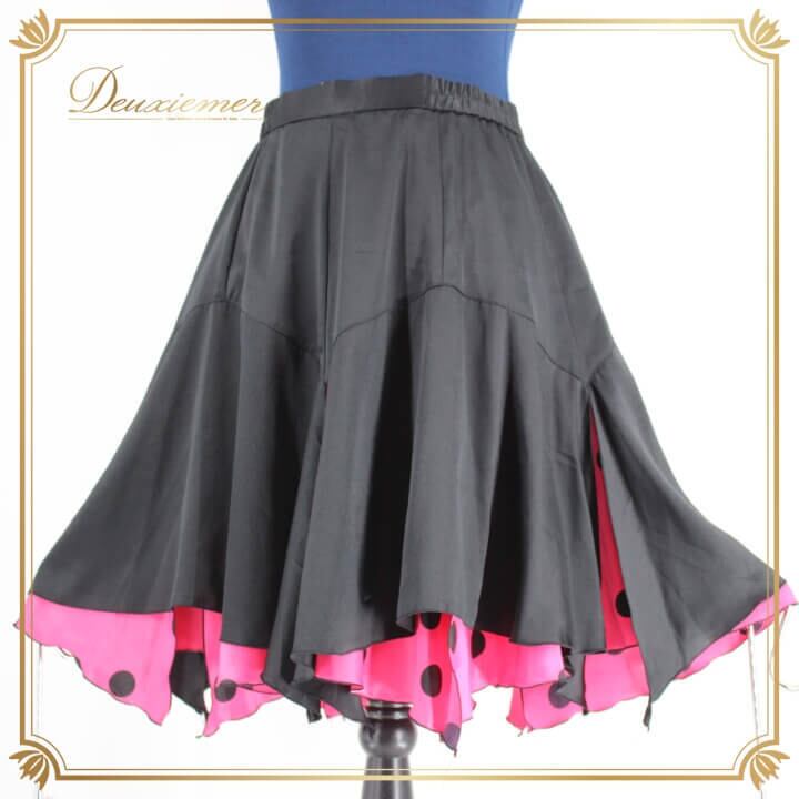 社交ダンス 衣装 スタンダード スカート レッスンウェア レディース オールシーズン ブラック系 ピンク系 PROCEEDS プロシーズ 水玉 ドット ブラック ビビッドピンク レトロ 可愛い ドット柄 ファスナー Mサイズ 伸縮性あり おしゃれ