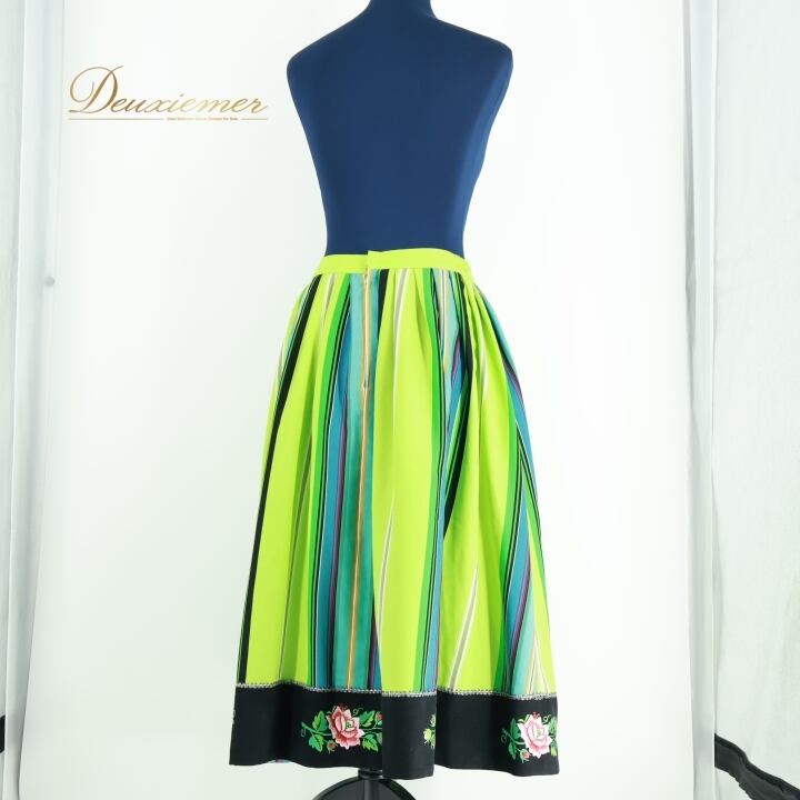 フォークダンス 衣装 スカート グリーン系 ナロッドニー 花柄 ストライプ 刺繍 黄緑 黒 赤 青 NARODNI 日本製 明るい 華やか チロリアン カントリー ブラック系 ブルー系 ピンク系 レッド系