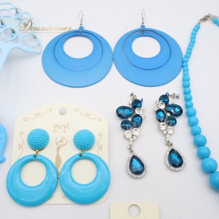 フラメンコ 小物 小道具 ペイネタ ピアス イヤリング フローレス ネックレス 花 アクセサリー まとめ売り セット ブルー系 水色 青 舞台 発表会 アクセサリーセット 小物まとめ売り ダンス小物 イベント用 青系 ペイネタ フラメンコアクセサリー