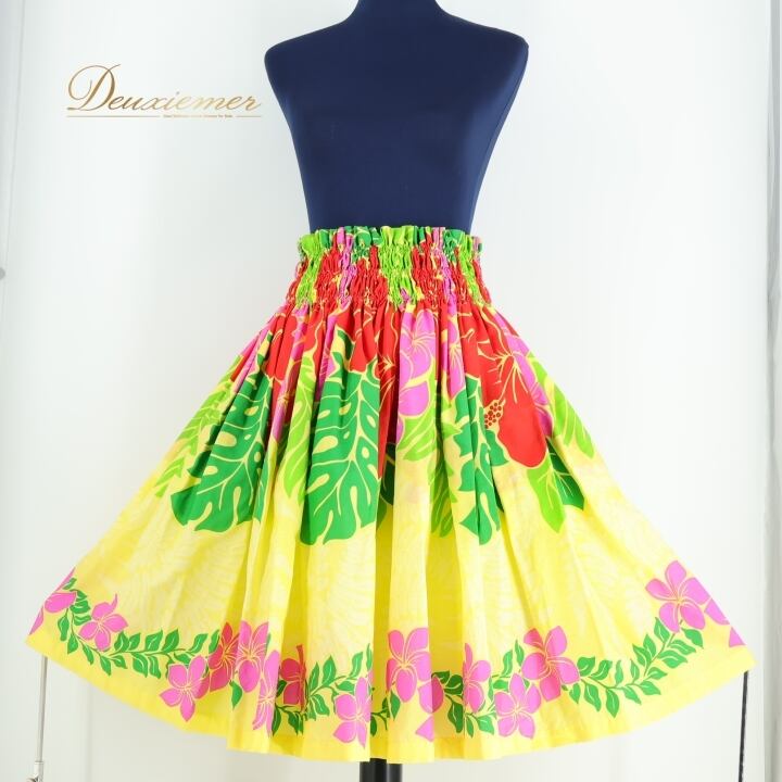 フラダンス 衣装 パウスカート イエロー系 フラ ダンス シングル モンステラ柄 ハイビスカス柄 レッスン 花柄 鮮やか 華やか 練習 明るい ふんわり ハワイアン スカート アロハ ハワイアンプリント レッド系 グリーン系 ピンク系