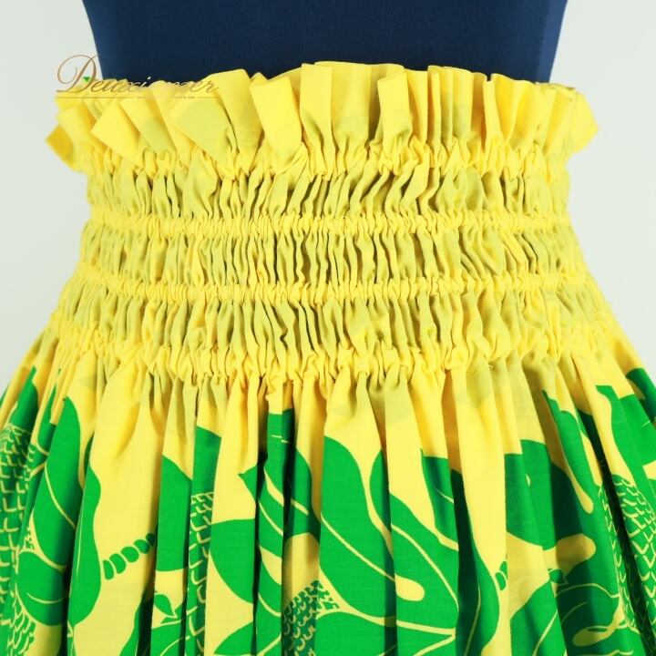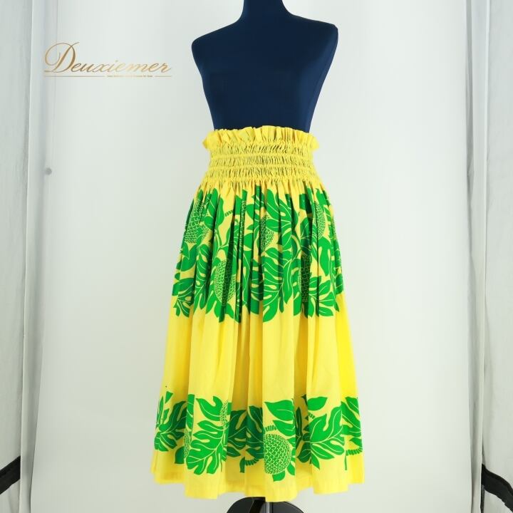 フラダンス 衣装 パウスカート イエロー系 フラ ダンス シングル 黄 緑 レッスン 華やか アロハ 鮮やか 明るい 練習 ハワイアンプリント ふんわり スカート グリーン系