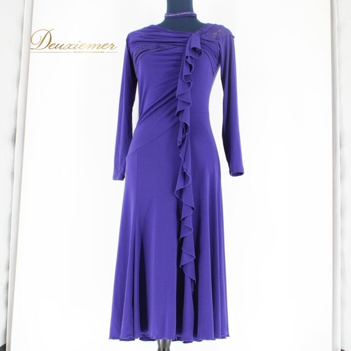 社交ダンス 衣装 チャコット Chacott ワンピース ドレス レース パーティ 発表会 紫 上品 高級感 綺麗 パープル系 日本製 おしゃれ パフォーマンス ダンスウェア 上品デザイン エレガント レディース フォーマル
