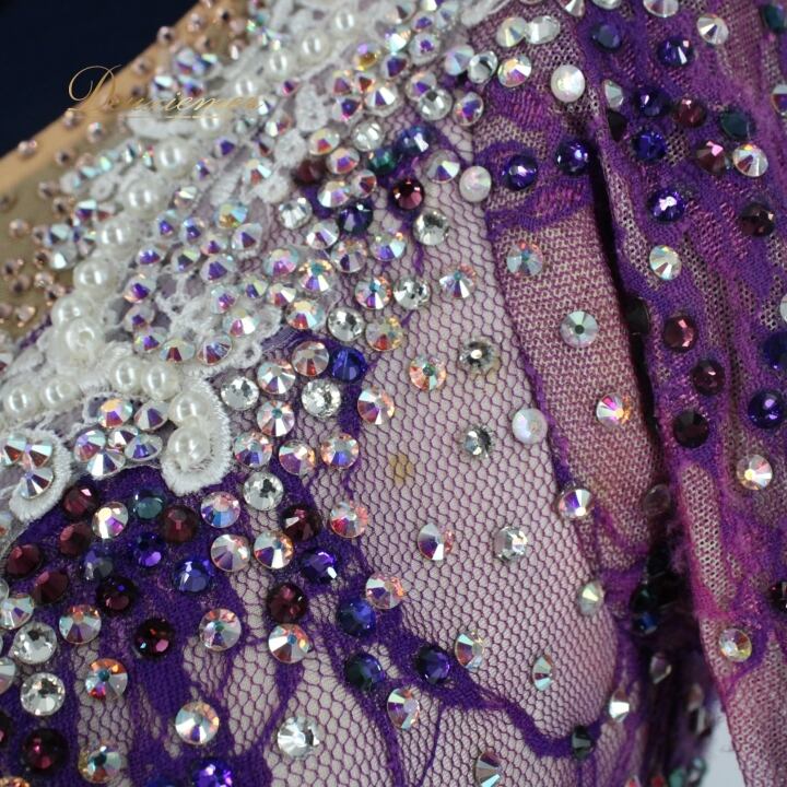 社交ダンス 衣装 スタンダードドレス スタンダード ワンピース ドレス デモ 競技 紫 レース フロート ドレスのフジタ Fujita 日本製 パープル系 パーティ 発表会 高級感 大人 女性用 フォーマル ダンス 発表会用 演出用 おしゃれ パーティードレス ステージ衣装 エレガント