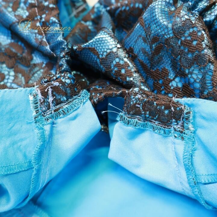 #フラダンス衣装 #ワンピース #ドレス #ブルー #ブラウン #光沢 #花柄 #レース #女性用 #トルソー #ファッション #ダンス衣装 #華やか #スタイル #カラフル #夏のコーデ #ビーチスタイル #パーティドレス #オシャレ #ENUTSU