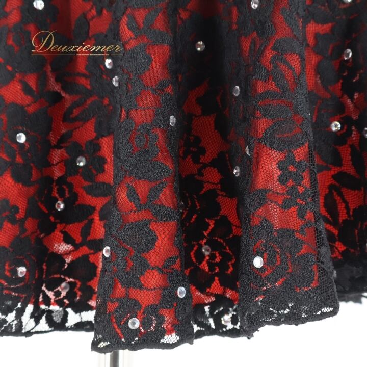 フィギュアスケート 衣装 フィギュア コスチューム ウェア 赤 黒 レッド系 レース フリル レオタード ワンピース フィギュアスケートコスチューム ダンス発表会 レースワンピース おしゃれ フィギュアダンス 赤黒カラー 子供ドレス