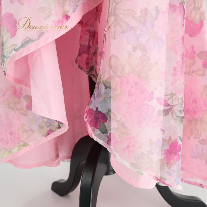 #フラダンス #衣装 #ワンピース #ドレス #淡いピンク #花柄 #透け感 #上品 #華やか #フリル #ノースリーブ #パーティー #ビーチ #イベント #コスチューム #女性用 #ファッション #ドレスアップ #オシャレ #ENUTSU