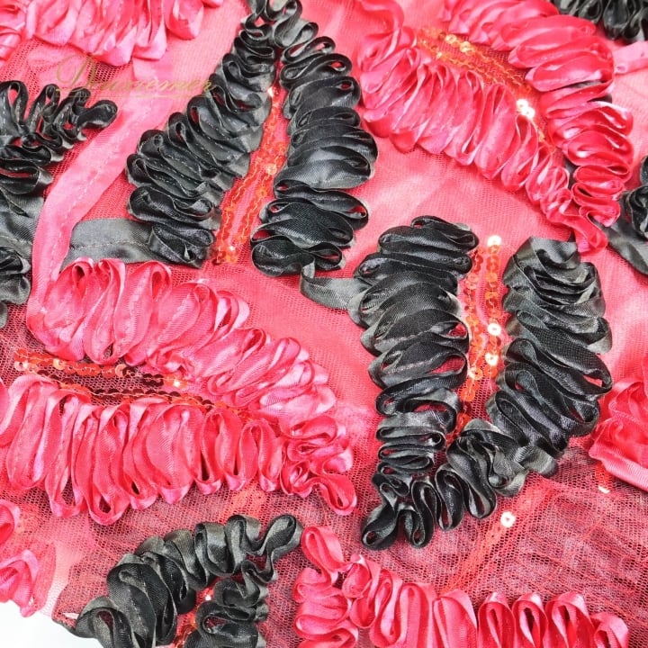 パーティドレス ワンピース ドレス レインボー レッド系 赤 ブラック系 黒 レース スパンコールラメ RAINBOW 発表会 イベント ダンス 舞台 ボリューム おしゃれ かわいい フォーマル パーティー装飾 華やか ゴージャス パーティーコーデ