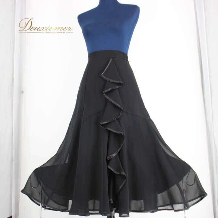 社交ダンス 衣装 スタンダード スカート レッスンウェア レディース オールシーズン PAPILLON パピヨン ブラック系 黒 無地 シンプル フリル スカート丈82cm ウエスト30cm~ アーバンブラック 洗練 レディース衣装 ファスナー 伸縮性