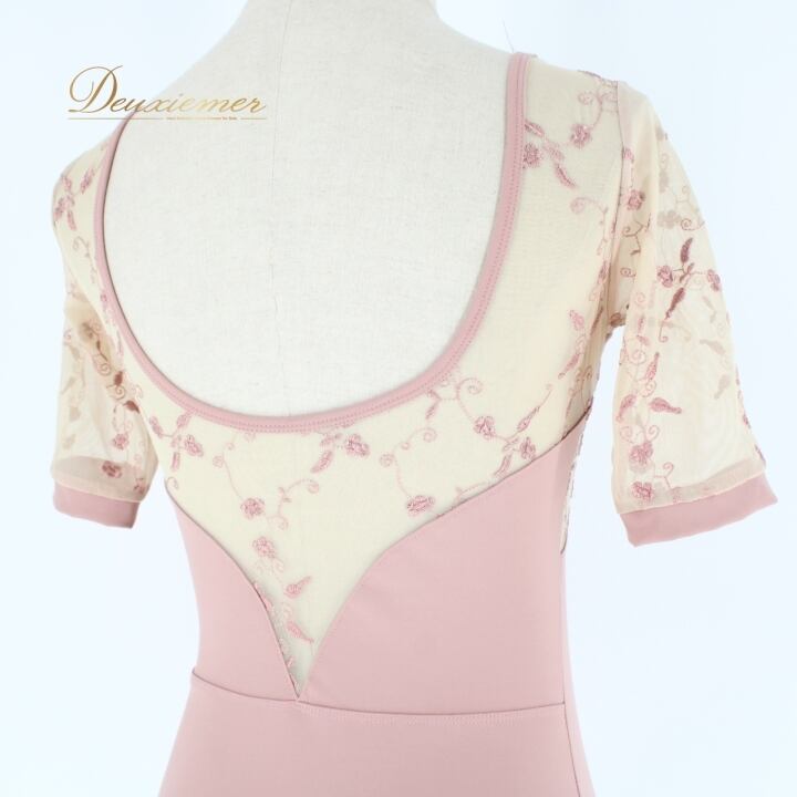 バレエ 衣装 レオタード レース 刺繍 ピンク系 くすみピンク レッスン 練習着 レッスンウエア 半袖 L かわいい 大人用 レオタード トレーニング スポーツウェア おしゃれ 女性用 バレエレオタード 柔らかい 透け感 ダンス衣装