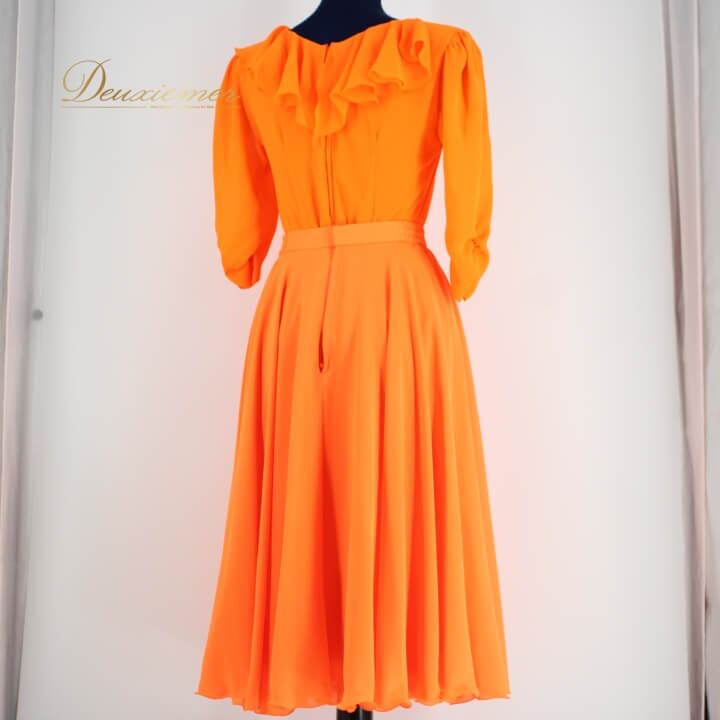 #社交ダンス #ダンス衣装 #社交ダンス衣装 #ダンスファッション #レオタード #ダンスウェア #トルソー #日本製 #蛍光オレンジ #トップス #スカート #ファスナー仕様 #伸縮性 #肩パッド #ダンスコスチューム #ダンススタイル #パフォーマンス #エレガント #おしゃれ #ENUTSU