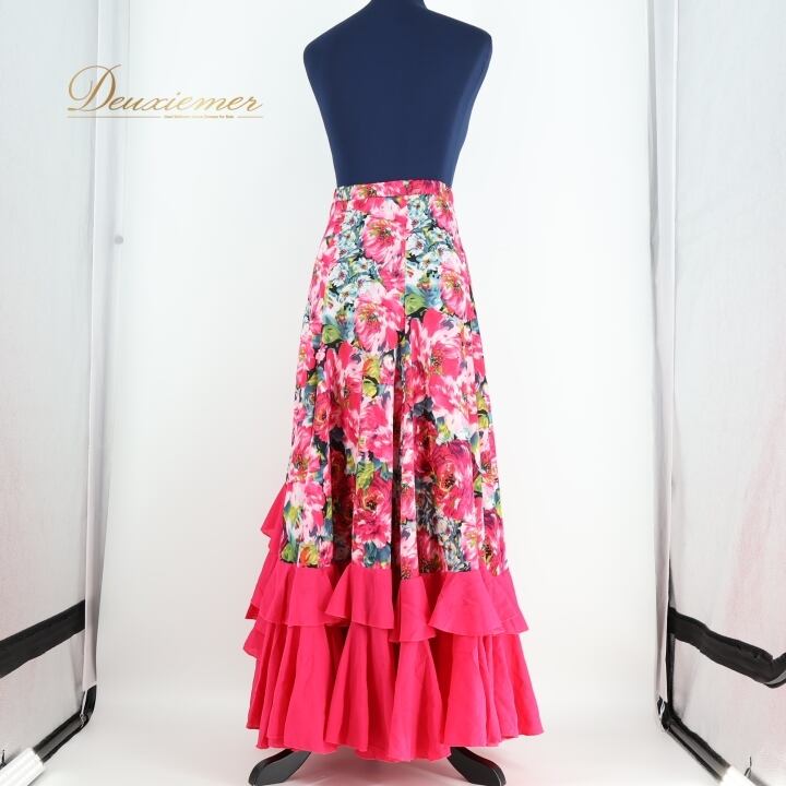 #フラメンコ #ファルダ #スカート #フラメンコ衣装 #鮮やかなピンク #花柄 #ボルタ #ダンス衣装 #ウエストゴム #ビビッドカラー #女性用衣装 #華やか #クラシック #ステージ衣装 #フォーマル #舞台装飾 #ダンスファッション #舞踏衣装 #手作り衣服 #ENUTSU