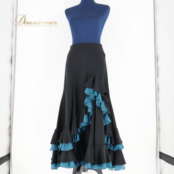 フラメンコ 衣装 ファルダ スカート 黒 フリル ボランテ 青 ストライプ レッスン 練習着 gracia グラシア ブラック系 ブルー系 スカートダンス ファッション おしゃれ 踊り フラメンコスタイル 無地 レディース ウェア 練習用