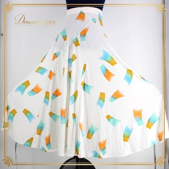 社交ダンス 衣装 スタンダード スカート レッスンウェア レディース オールシーズン ホワイト系 イエロー系 オレンジ系 ブルー系 白 水色 カラフル ダンス スカート フレア スカート Mサイズ ゴム仕様 伸縮性 ステージ衣装 カラフルデザイン
