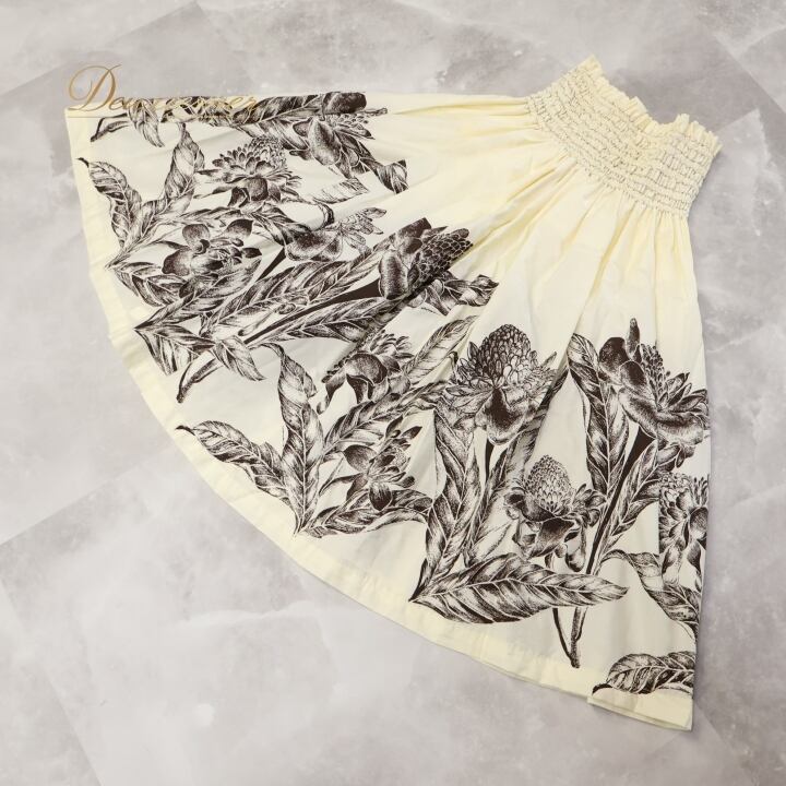 フラダンス 衣装 パウスカート ホワイト系 フラ ダンス シングル ハワイアン 白 茶 花柄 華やか 明るい レッスン スカート アロハ ハワイアンプリント 練習 ブラウン系