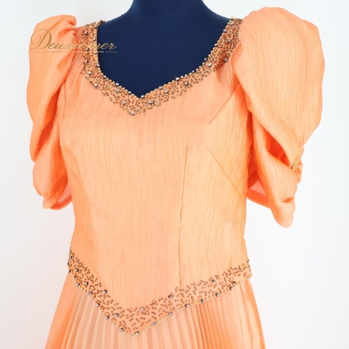 パーティドレス ワンピース ドレス オレンジ系 ラインストーン ビーズ レース プリーツ 発表会 二次会 イベント ダンス 舞台 コスチューム 発表会用 結婚式 おしゃれ ファッション レディース プリンセススタイル お呼ばれ 大人可愛い