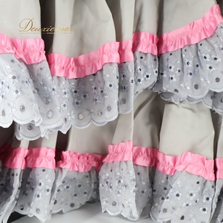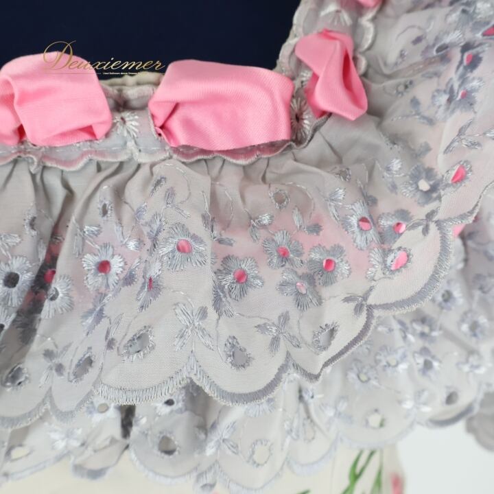 フラメンコ 衣装 ワンピース ドレス ピンク ボランテ フリル レース リボン スペイン製 ボリューム かわいい 刺繍 ダンス 発表会 パーティ グレイ系 おしゃれ エレガント 衣装 かわいいイベント 舞台衣装