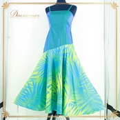 フラダンス 衣装 ワンピース ドレス ブルー系 フラ ダンス キャミソール ハワイアン 光沢 鮮やか アロハ 葉っぱ柄 青 緑 黄緑 ボタニカル 華やか 軽い ハワイアンプリント グリーン系
