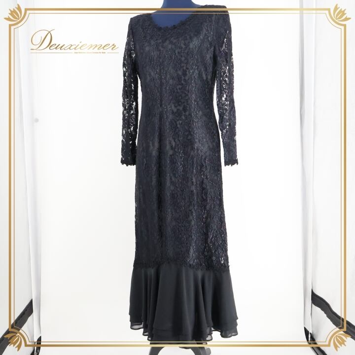 パーティドレス ワンピース ドレス Homme et Femme レディース ブラック系 黒 真っ黒 花柄 レース 日本製 発表会 イベント 舞台 シンプル オシャレ お出かけ 服装 フォーマル 袖あり レース素材 女性用 ドレスアップ レディースファッション