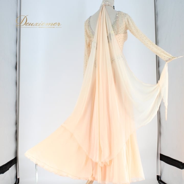 社交ダンス 衣装 白樺ドレス スタンダードドレス スタンダード ワンピース ドレス フロート デモ 競技 ダンス パーティ 発表会 オレンジ 上品 高級感 ピンク系 フェミニン エレガント ドレッシー ステージ イベント 競技会用