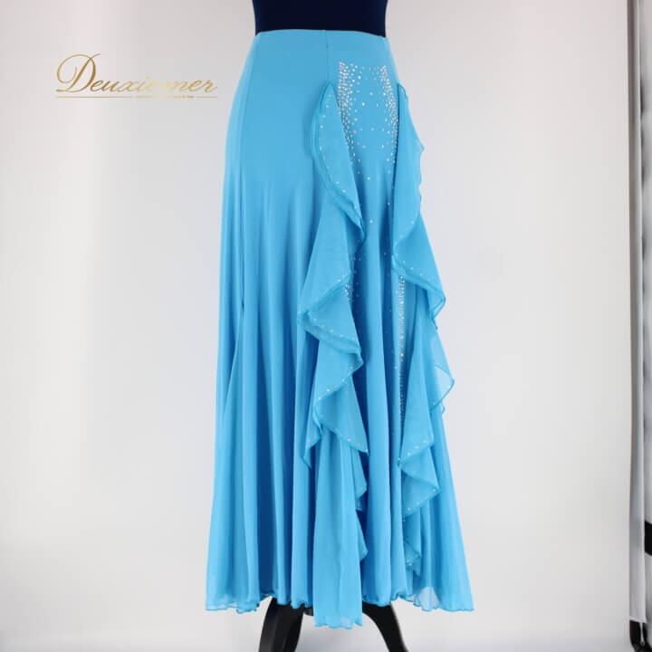 社交ダンス 衣装 スタンダード スカート レッスンウェア レディース オールシーズン Leirena レイリーナ ブルー系 水色 ライトブルー スカート舞台用 フェミニン ラインストーン 光沢 伸縮性有り ダンスウェア レッスン用 ヘムデザイン おしゃれ