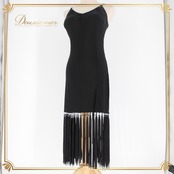 社交ダンス 衣装 gentil ジャンティ ラテン ドレス ワンピース ブラック系 黒 フリンジ 伸縮 編み上げ 黒 無地 レディース 社交ダンス衣装 ワンピースドレス レディースドレス ストレッチ素材 フリンジデザイン エレガント ダンスパフォーマンス 黒ドレス Mサイズ 女性用 クラブ衣装 フォーマルイベント ラテンスタイル ダンスウエア