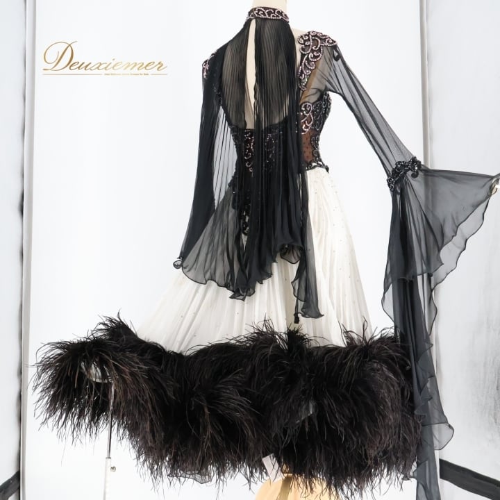 #社交ダンス #ダンス衣装 #ワンピース #ドレス #モノクロ #ファー #プリーツ #ファッション #ダンスファッション #レディースファッション #アクティブウェア #パーティードレス #エレガント #女性用衣装 #スタイリッシュ #おしゃれ #衣装レンタル #ダンスショー #美しい服 #ENUTSU