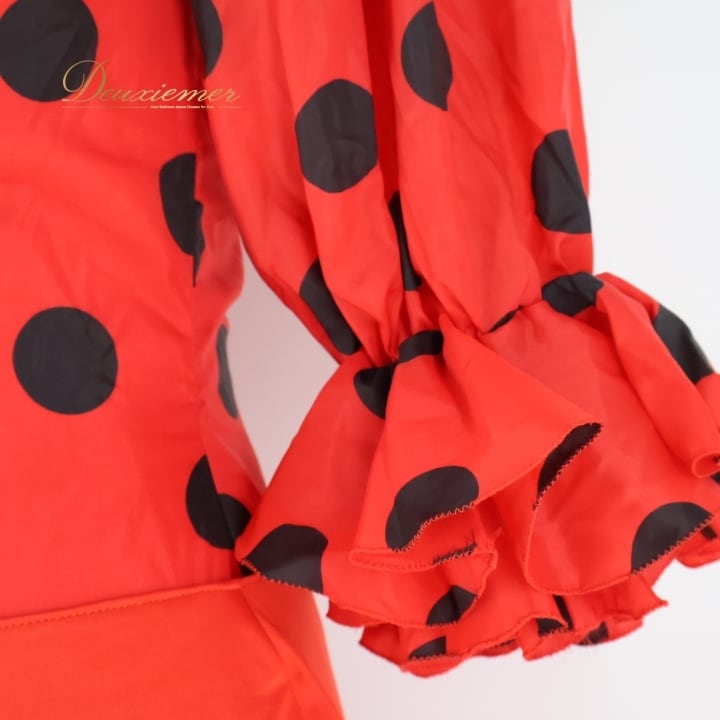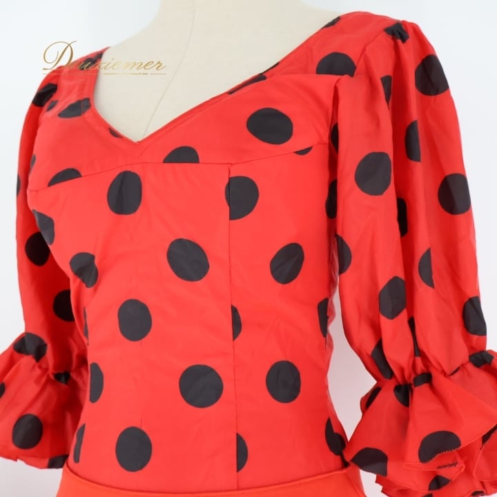フラメンコ 衣装 チャコット Chacott トップス ファルダ スカート ブラウス 赤 黒 ドット 水玉 ボランテ フリル ダンス ミニ丈 レッド系 スペイン製 フラメンコ衣装 ダンス衣装 スカートセット スペイン製ダンス衣装 ポイントフリル レディース Mサイズ ポップ ドット柄 赤色系 ブラック系 無地 上下セット