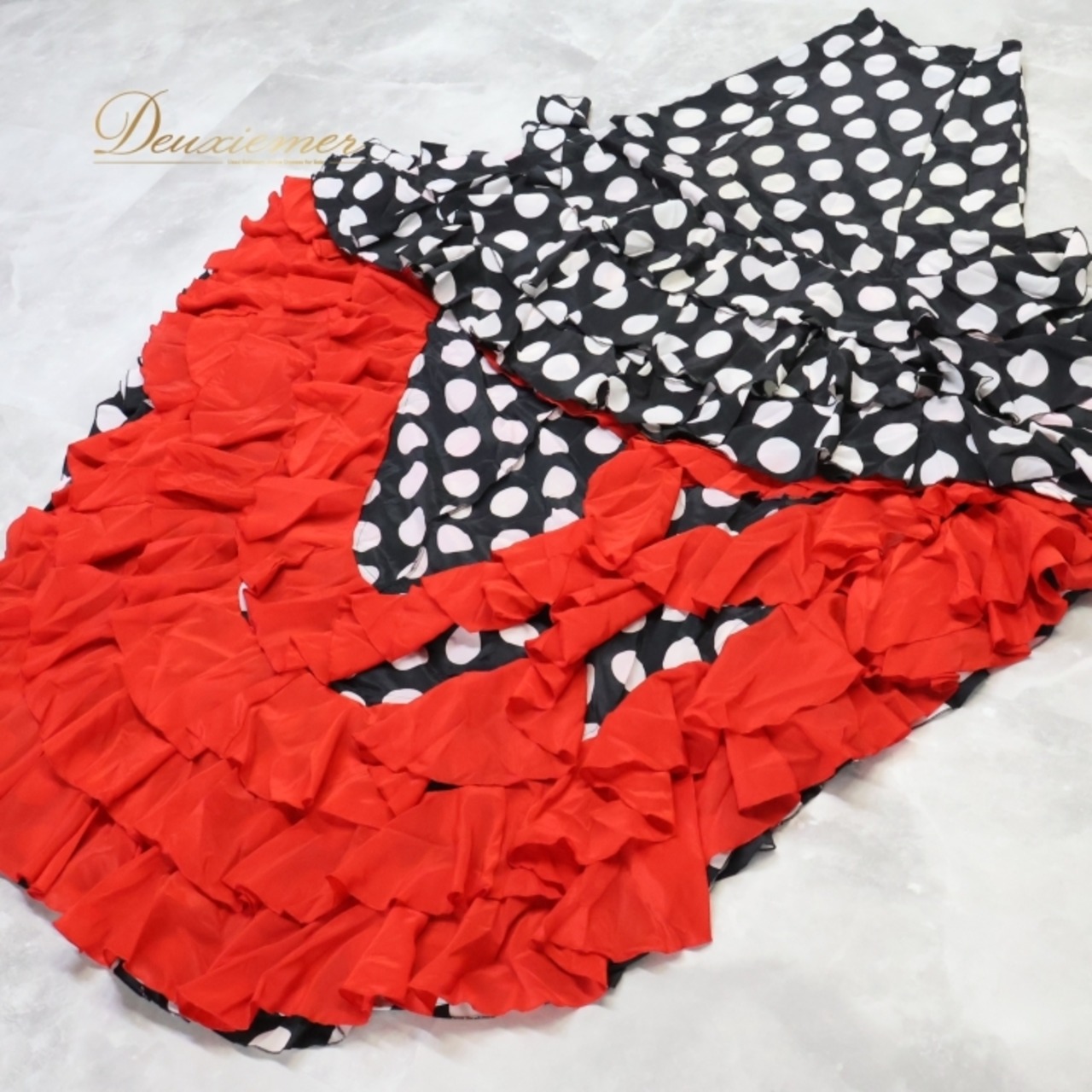 #フラメンコ #衣装 #バタデコーラ #ファルダ #スカート #ドット柄 #赤色ボランテ #女性ファッション #ダンス衣装 #フラメンコ衣装 #パフォーマンス衣装 #エレガント #おしゃれ #高品質 #ポリエステル100 #ファッションデザイン #特別な日 #トルソー #イベント衣装 #ENUTSU