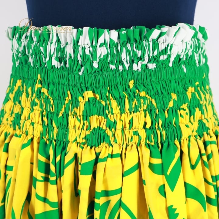 フラダンス 衣装 パウスカート グリーン系 フラ ダンス シングル レッスン 花柄 ティアレ柄 鮮やか 花柄 ハワイアン アロハ 華やか ハワイアンプリント かわいい イエロー系 ホワイト系