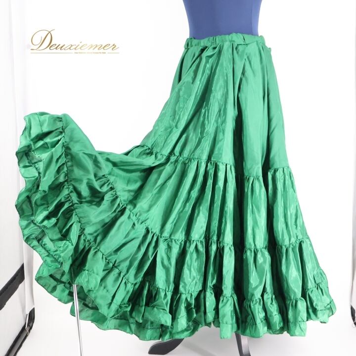 ベリーダンス 衣装 ジプシースカート レディース 25ヤード グリーン系 緑 ロング フリル 大きく広がる裾 無地 シンプル 光沢 艶 コスチューム 発表会 スカート ダンス衣装 発表会衣装 25ヤードスカート 鮮やか 衣装アクセント ダンスイベント